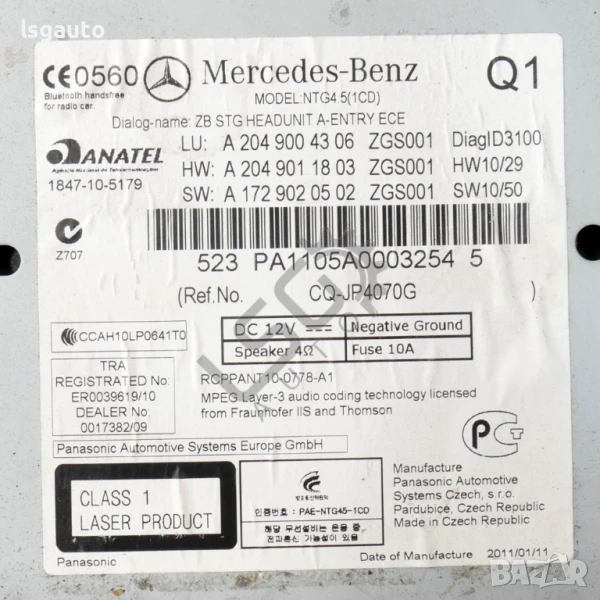 CD плеър Mercedes-Benz C-Class 204 (W/S/C) 2007-2014 ID:148228