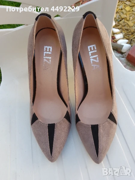 Дамски обувки от велур, бежов цвят, висок ток. От тях имам 36,37 и 38 номер. Обувките са елегантни,за официални.