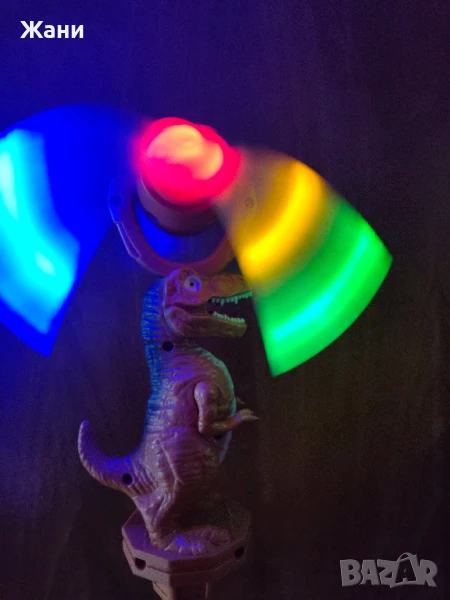Забавление за деца. Динозавър със звук и светлина и въртящ се механизъм. Материал: Пластмаса. Работи с батерии.