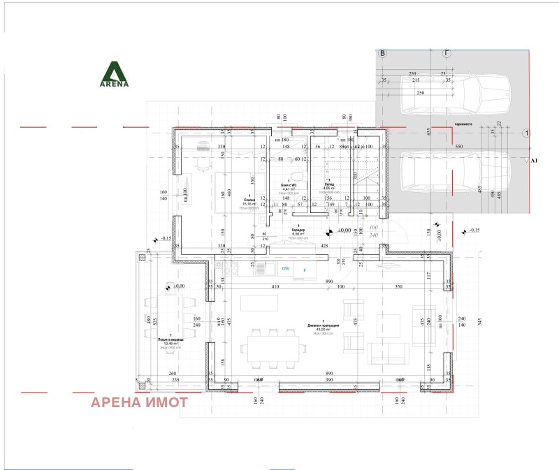 Къщата е разпложена в самостоятелен парцел от 500 кв.м., осигуряващ уединение, спокойствие и комфорт за бъдещите собственици. Предлага се на етап завършеност по БДС - шпакловка и замазка, изградена ел. инсталация до ключ, ВиК до тапа и поставени тръби за подово отопление.