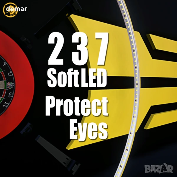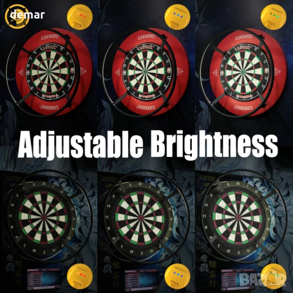 Разполага с 237 меки светодиода в силиконова лента за премахване на сенките и намаляване на напрежението в очите по време на игра на дартс, със специализиран ъгъл на осветление, който се фокусира директно върху дартс мишена за по-добро прицелване. Преносимият дизайн улеснява настройването, съхранението и транспортирането, а регулируемите нива на яркост ви позволяват да персонализирате осветлението според вашата среда. Предлага се с два комплекта монтажни скоби, съвместими както с традиционни, така и с електронни дартс мишени, което го прави идеален за дома, клубове, кръчми или турнири.