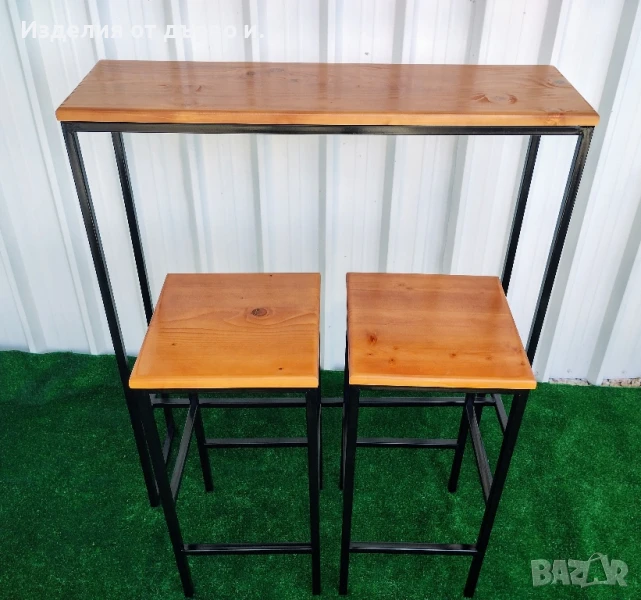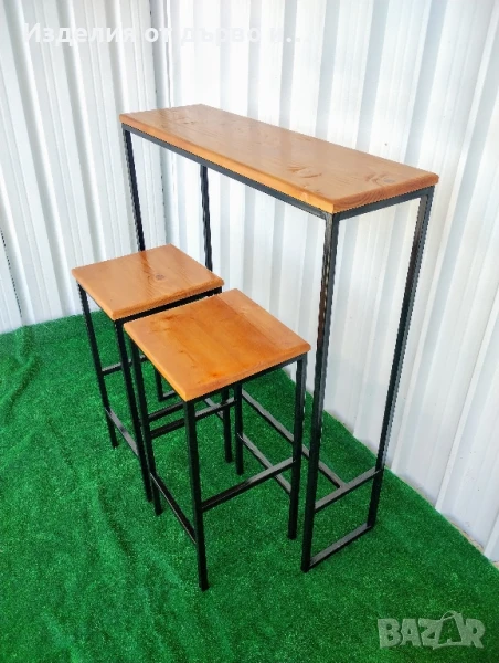 Железни бар маси и столове комбинация с дърво здрава заварена конструкция без сглобяване