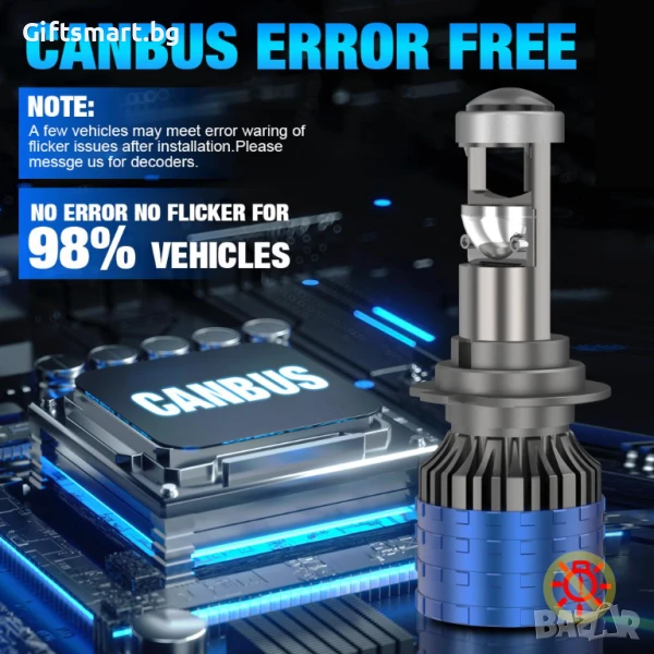 Изпитайте първокласно автомобилно осветление с този комплект от две H7 LED крушки. Иновативен модел. с лупа, която позволява монтиране на фарове без лупи, като предотвратява заслепяването водача в отсрещния автомобил. С невероятната мощност от 110W и впечатляващите 30000 лумена яркост, тези крушки предефинират стандарта за видимост на тъмни пътища. Всяка крушка е проектирана с лупа и интегрирана Cambus технология, осигуряваща прецизен и равномерен светлинен лъч, елиминирайки всякаква възможност за грешки в електрическата система на вашия автомобил.