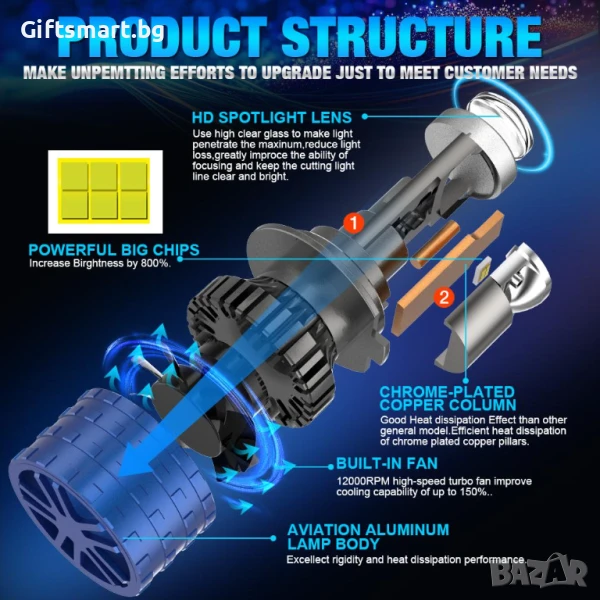 Компактни и лесни за инсталиране, тези LED крушки предлагат изключителна производителност при всякакви условия на употреба. Интелигентният им дизайн включва ефективна система за охлаждане, проектирана да предотвратява прегряване и да осигурява дълготрайна издръжливост. Надстройте колата си с тези висококачествени LED крушки и се насладете на превъзходно и безпроблемно шофиране. С всеки детайл, проектиран за максимална производителност и надеждност, тези крушки са идеалният избор за тези, които търсят най-доброто осветление за колата си.