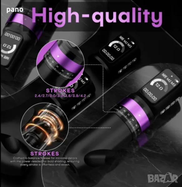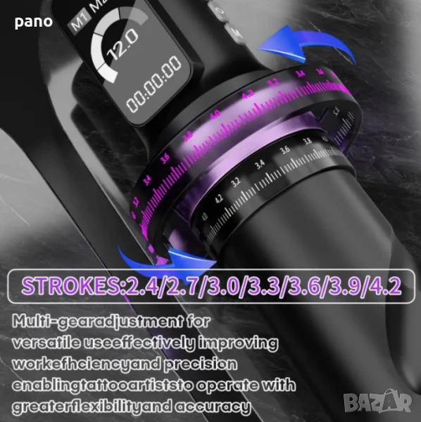 Налична (95€.) Нова Poseidon NEW Adjustable stroke tattoo machine. Най Новата тату машина на марка Poseidon, с много иновации. Регулиране на строук от 2.4 до 4.2. Регулиране на волтажа от 4до12волта. Размерите са 13.5см дължина и 3.5см диаметър. Батерия 2300мач издържаща до 5-8 часа, със стабилна клик система за закрепване. Голям цветен дисплей, изобразяващ волтаж, херцове, времетраене, процент батерия,и плей, пауза. Мощен японски мотор-8v8000rpm. Функция за памет,с три режима, функция Дот, и функция джъмп старт. Машината е яко напудрена. Подходяща е за всеки стил на работа. Facebook PANDA tattoo supply