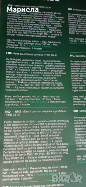 Четка за почистване на фасади и стъкло за водоструйки с високо налягане / Parkside / 150 бара