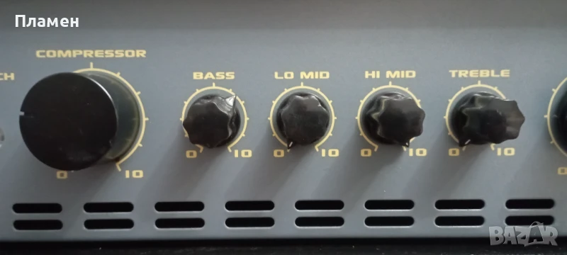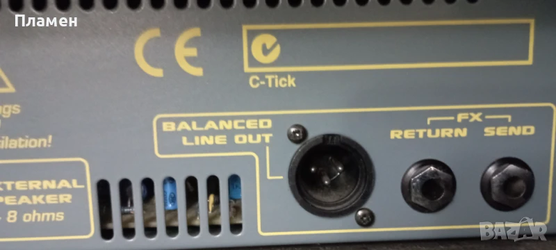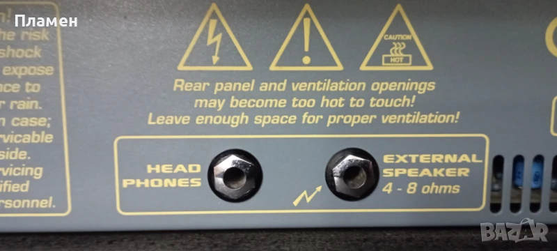 лампов усилвател. Master е потенциометър за контрол на силата на звука на изходния сигнал на усилвателя на мощност, който е снабден с функция DynaClip, която по същество е вид ограничител. HF horn – този превключвател активира/деактивира високочестотния високоговорител – така нареченият horn, който произвежда онези тихо звънтящи високи честоти. За повече информация за усилвателя можете да проверите в интернет, там гъмжи от такава. Технически усилватела е изправен, а външния вид е видим на снимките. Направил съм доста изчерпателни снимки на кубето. Бартери не ме интересуват.