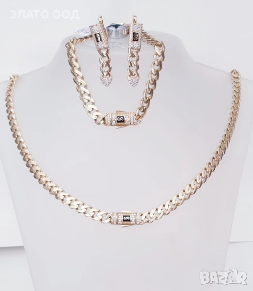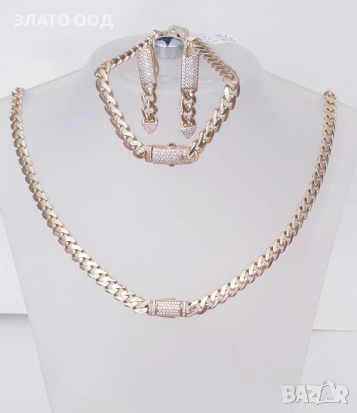 Златни синджири, гривни, обеци, пръстени Монако. Различни модели. Продават се както на сет, така и по отделно. Сертификат и маркер проба 585. Обявената цена 430 лв е за пръстен. За цени и параметри на останалите изделия, пишете на вайбър на посочения телефон.
