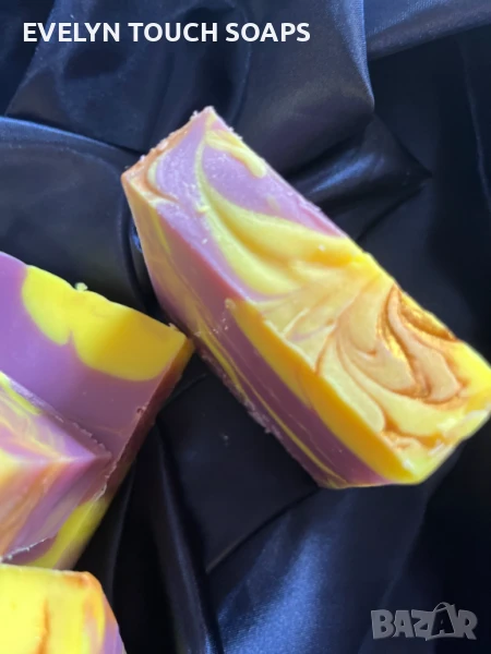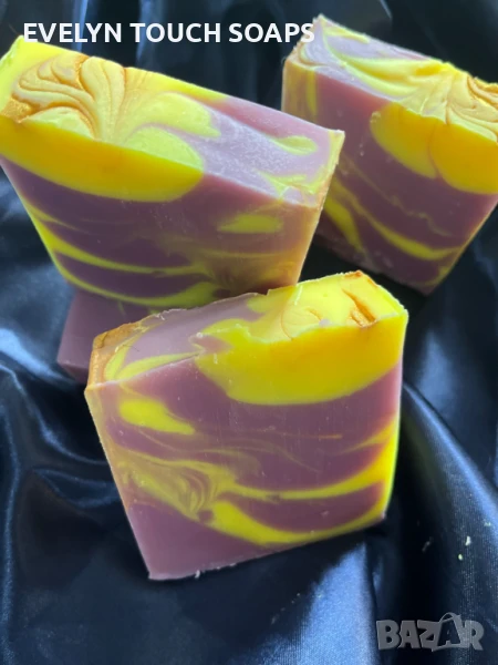 Този ръчно създаден сапун е любовна поема, излята в багри и аромат. Всяка лилаво-златна вълна крие капчица магия, а ароматната му сърцевина разкрива плодово-цветен еликсир на желанията.Сочна ябълка и сладка праскова се преплитат с флоралните нотки на жасмин и момина сълза, а финалът е нежен шепот на мускус, дървесина и екзотичен тамаринд.