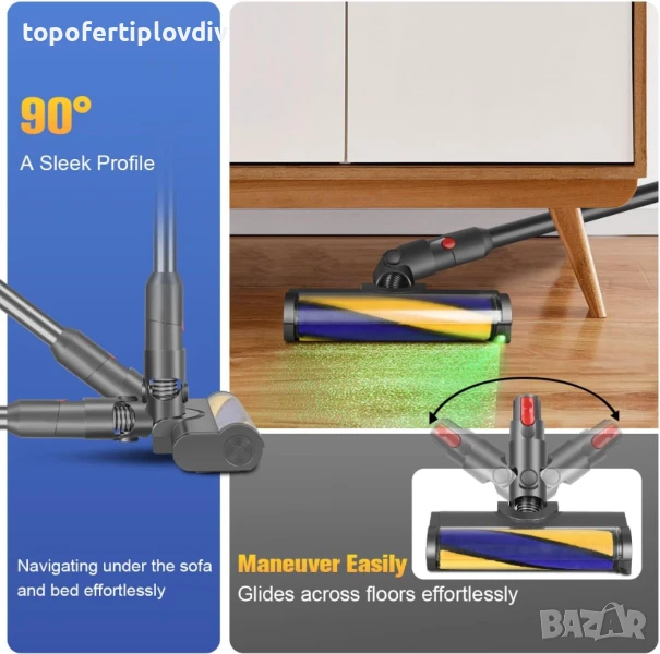 Подобрена видимост - Интегрирана с LED светлини, тази подова четка осветява скрития прах и отломки, което улеснява откриването на проблемни зони, изискващи цялостно почистване.