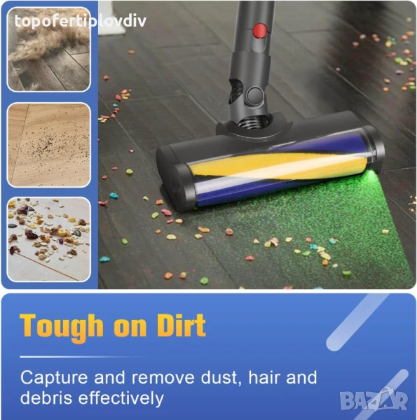 ЕФЕКТИВНО ПОЧИСТВАНЕ, НЕЖНА КЪМ ПОДА: Тази всмукателна глава ефективно улавя отломки като косми от домашни любимци, мръсотия и прах, без да оставя драскотини.