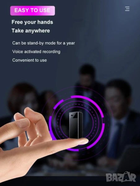 С малкия си размер това устройство се превръща в идеален избор за ситуации, в които поверителността и дискретността са от съществено значение. Използвайте го навсякъде и по всяко време в ежедневието.