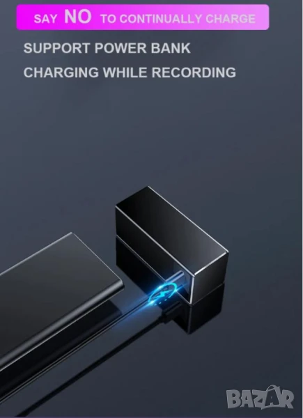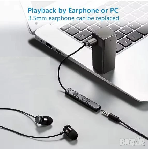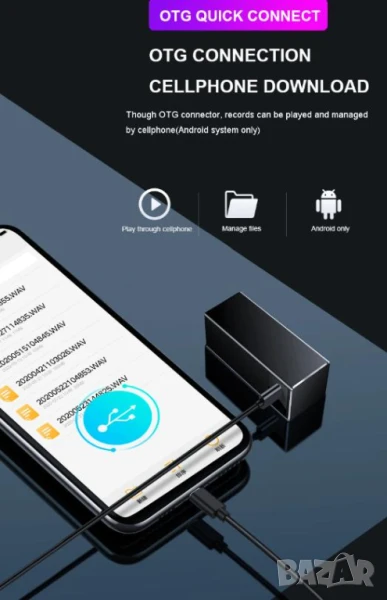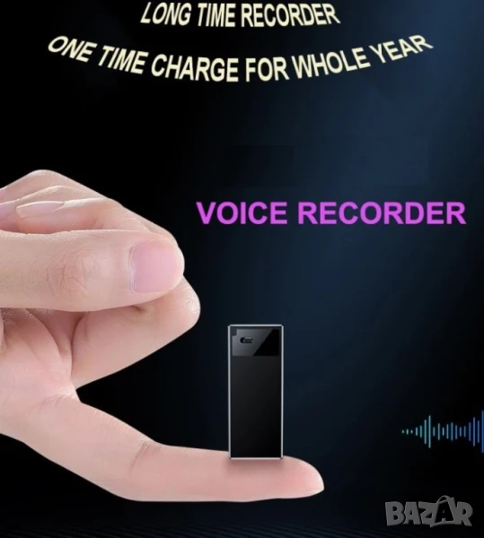 OTG 2х Микрофона 360° DSP Магнитен Шпионски Аудио Рекордер Гласово Активиране 384 часа Запис и 1 година в изчакване + MP3 плеър и слушалки.
