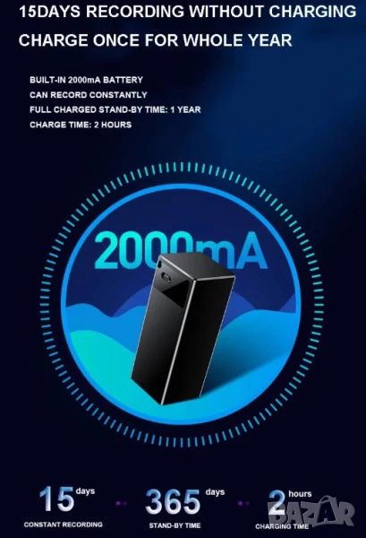 * Батерия: 2000mAh литиева батерия - 365 дни в режим на готовност!