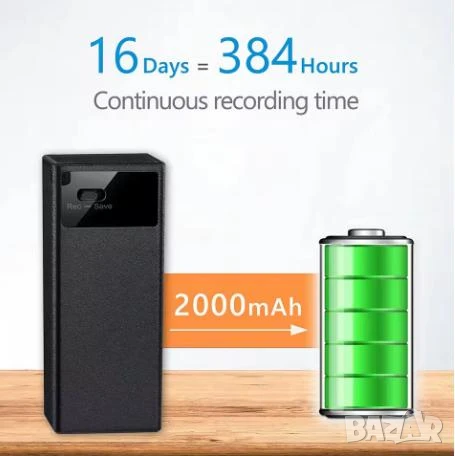 * Време за запис с батерия: Около 384 часа - 16 дни непрекъснат запис!