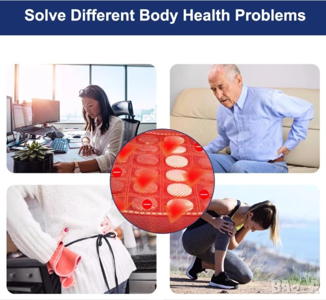 * Усъвършенстваната нагревателна подложка ефективно ще увеличи притока на кръв и ще активира тъканните клетки за облекчаване на мускулната болка и умората на тялото, бързо загрява с по-висока ефективност.