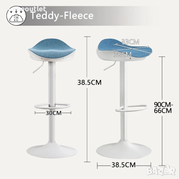 Бар столът има функция за завъртане на 360 градуса, което е перфектен избор за вашия кухненски остров.