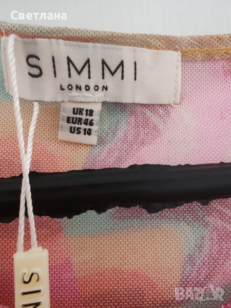 Страхотна плажна рокля Simmi London, нова с етикет, размер uk18,Eur 46. Цена 59 лв. Според мен е подходяща за М или L,аз съм S и ми е голяма.