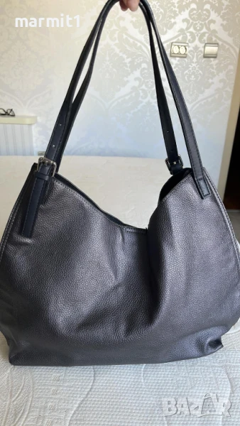 Тъмносиня металик дамска чанта Orsay с размери 40см в най-широката част и 30см в средата. Носена е за кратко, но се вижда на снимките, че няма конкретни забележки.