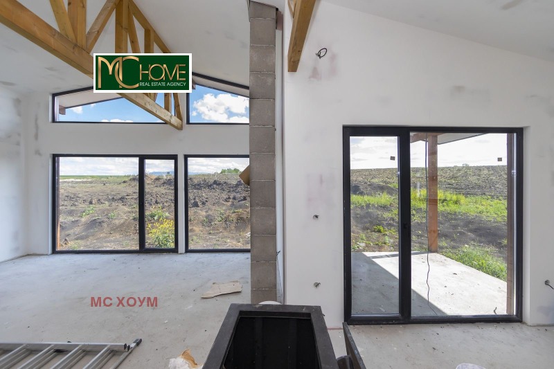 Къщата се издава на шпакловка и замазка, като отоплението е предвидено да е на климатици и/или камина.