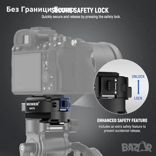 Универсална 1/4” резба – поддържа DSLR, безогледални, телефони, GoPro и др.