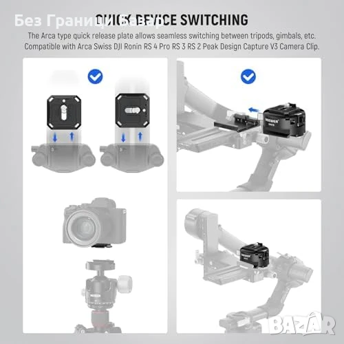 Нова Neewer GM47B QR Скоба за DJI RS Gimbal, Capture V3, Tripod Mount