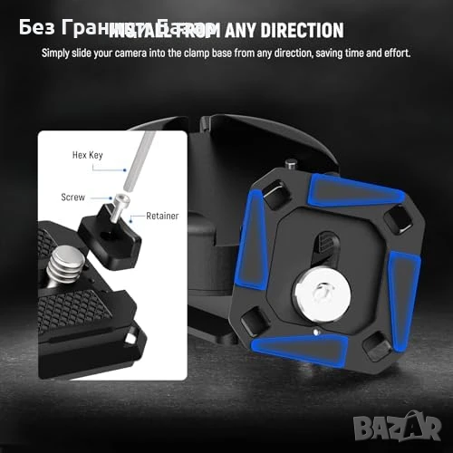 Бърза смяна на устройства за 1 секунда с Arca тип плоча и скоба