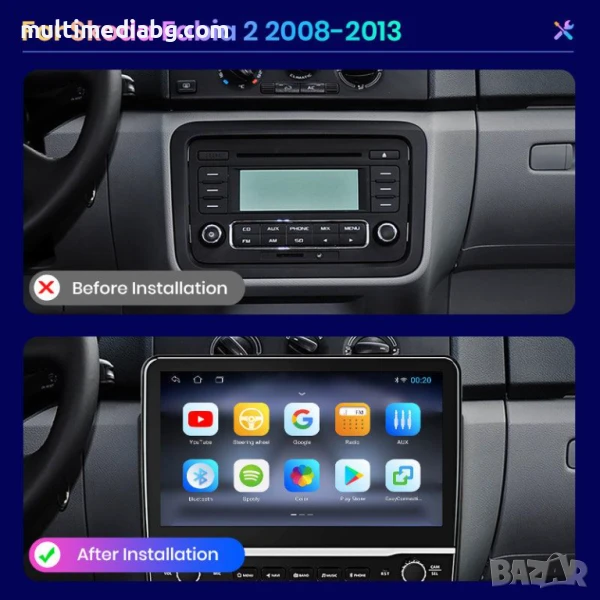 Мултимедия с операционна система Android за Skoda Fabia 2 съвместима с моделите от 2008 до 2013 година