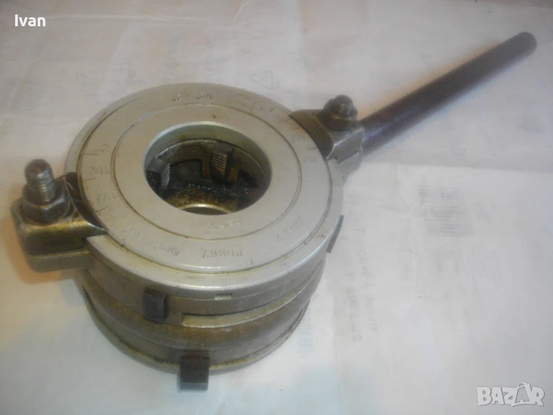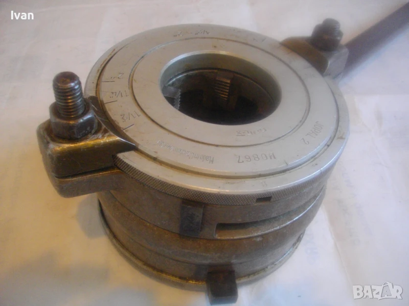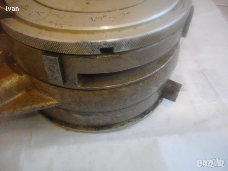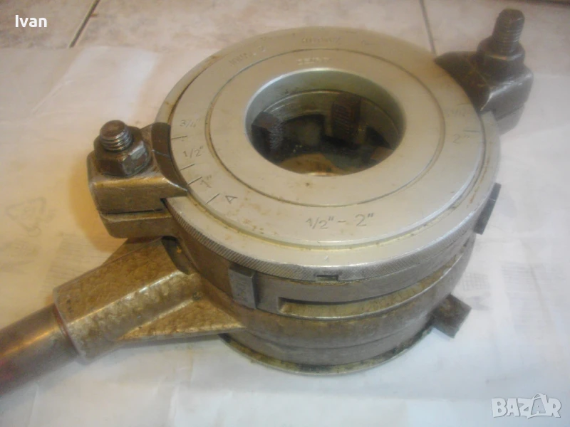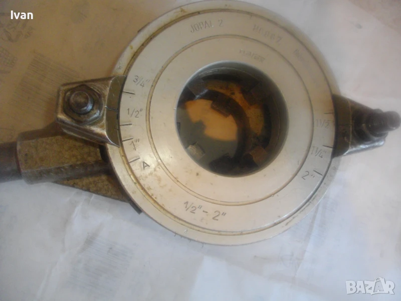 винторезка винтонарезка винторез пафта за резби на тръби старо качество чехословашка Жопал 2 - до 2 цола резби - JOPAL 2 Made in Chechoslovakia - отлично състояние. Цена 399 лв с поставени ножове размер 1/2 цол - 3/4 цол. Тресчотката е в отлично състояние. Задното менгеме също. Поставените ножове - 1/2 - 3/4 цол размер също са почти нови, като нови, в отлично състояние. Инструмента е профилактиран, смазан и гресиран. Функциите вървят съвсем леко, без запъване. Тегло на инструмента - 4,0 кг. Алуминиева глава и стоманена тръба за дръжка.