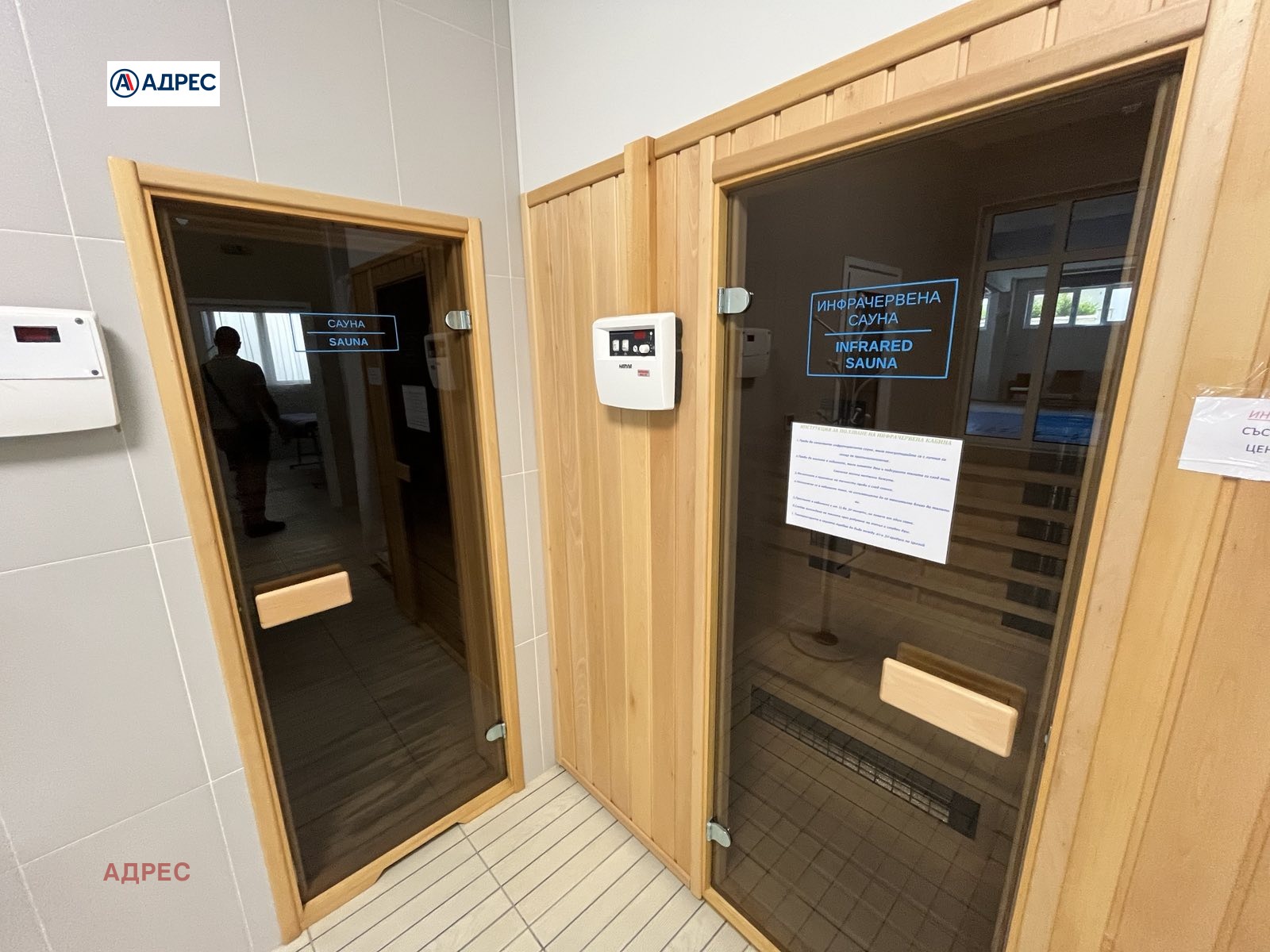 Закрит отопляем басейн със солена вода, сауна, солна стая, фитнес зала и възможност за масажи и козметични процедури за почивка и релакс през цялата година
