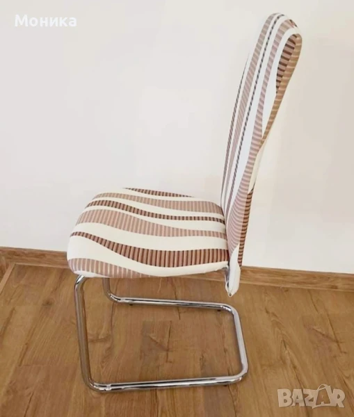 6 броя столове - със стилна визия и отлични като качество. Седалката и облегалката е изработена от плат . Цената е 60лв за брой.