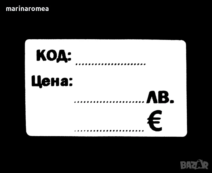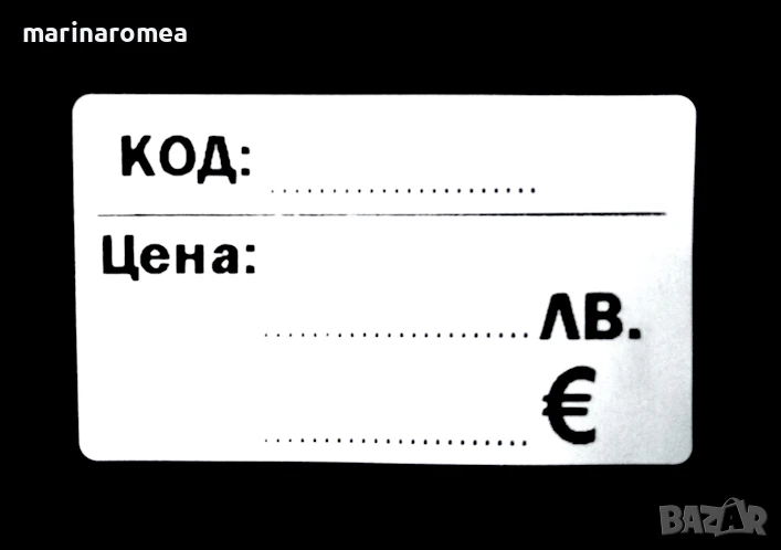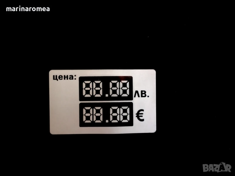 Марина Ромеа ЕООД продава универсални напечатани етикети за цени с двойно обозначение в лева и евро.