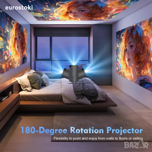 проектор 4K с WiFi 6 и BT 5.0 и вграден Android OS 11.0, предварително инсталиран YouTube, универсален дизайн, 130 инча, 360-градусов въртящ се интелигентен проектор
