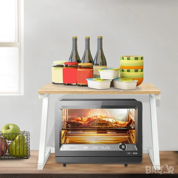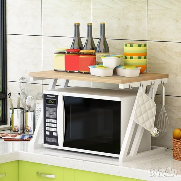 Belfoyer Z-образна стоманена рамка, рафт за фурна, кухненски рафт, скоба за микровълнова фурна с 4 мобилни куки, устойчив на корозия