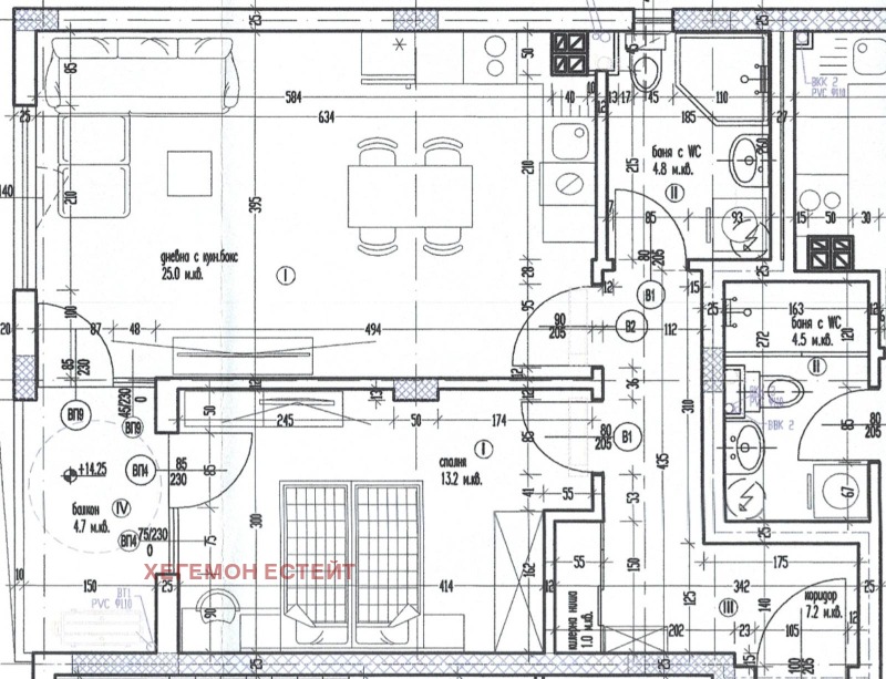 Всекидневна с трапезария 25 кв.м. с излаз на тераса, изложение - З;