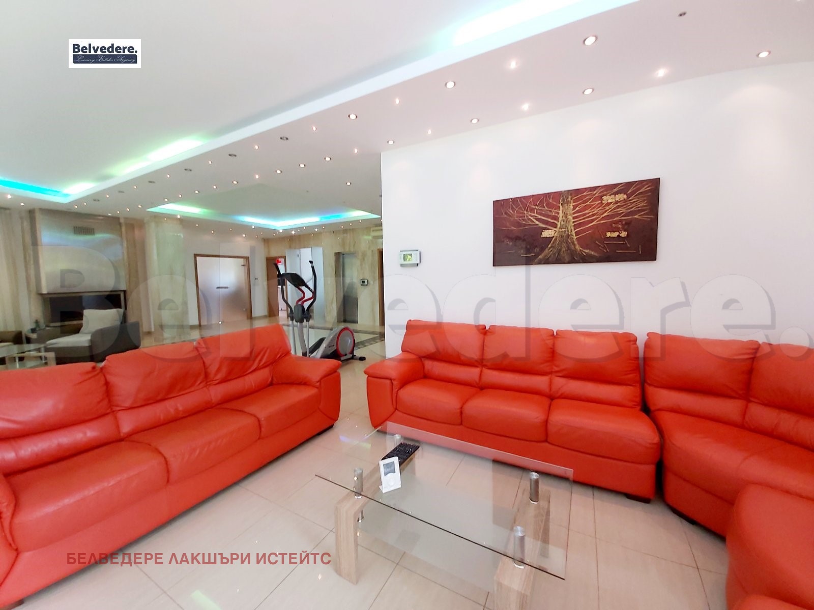 basement - garage for three cars, boiler room, wine room, gym, sauna with shower and bathroom, utility room, staff room with bathroom, elevator machine room;
