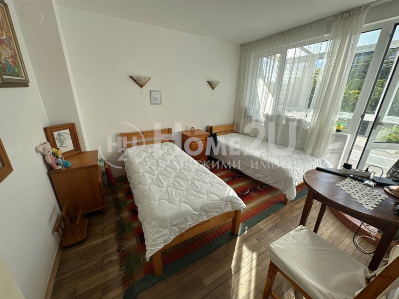 Ниво 2 - Тук е втората спалня с площ около 12 кв.м. с излаз на собствена тераса, второ санитарно помещение (баня с тоалетна), на това ниво имаме още едно помещение с площ около 8 кв.м. със собствена тераса, което сега се използва за дрешник, но спокойно може да бъде трета спалня в жилището.