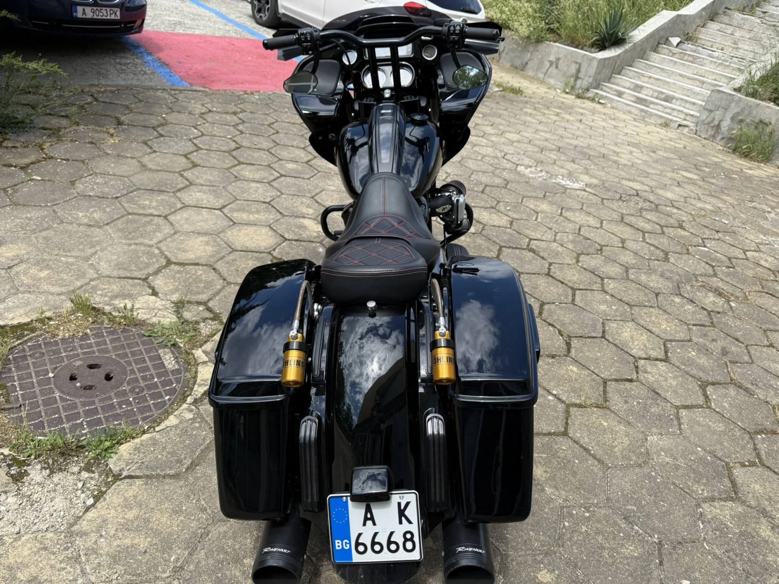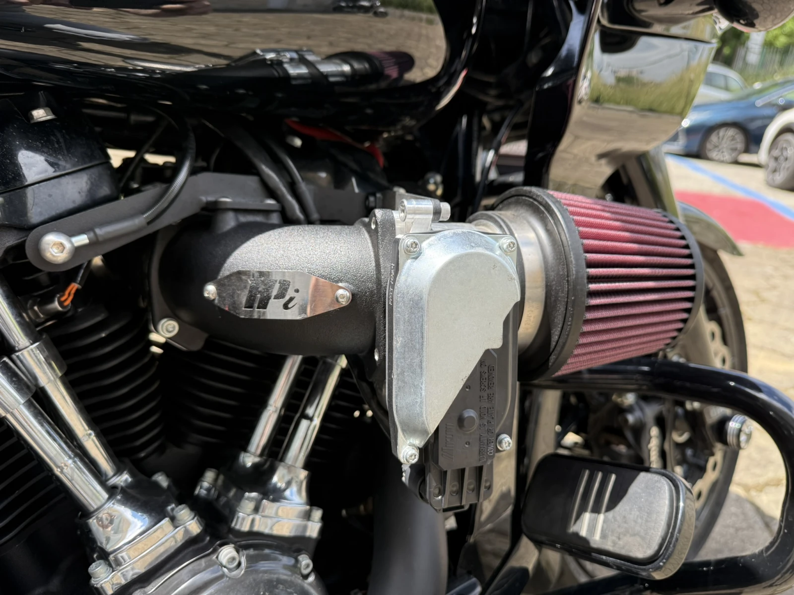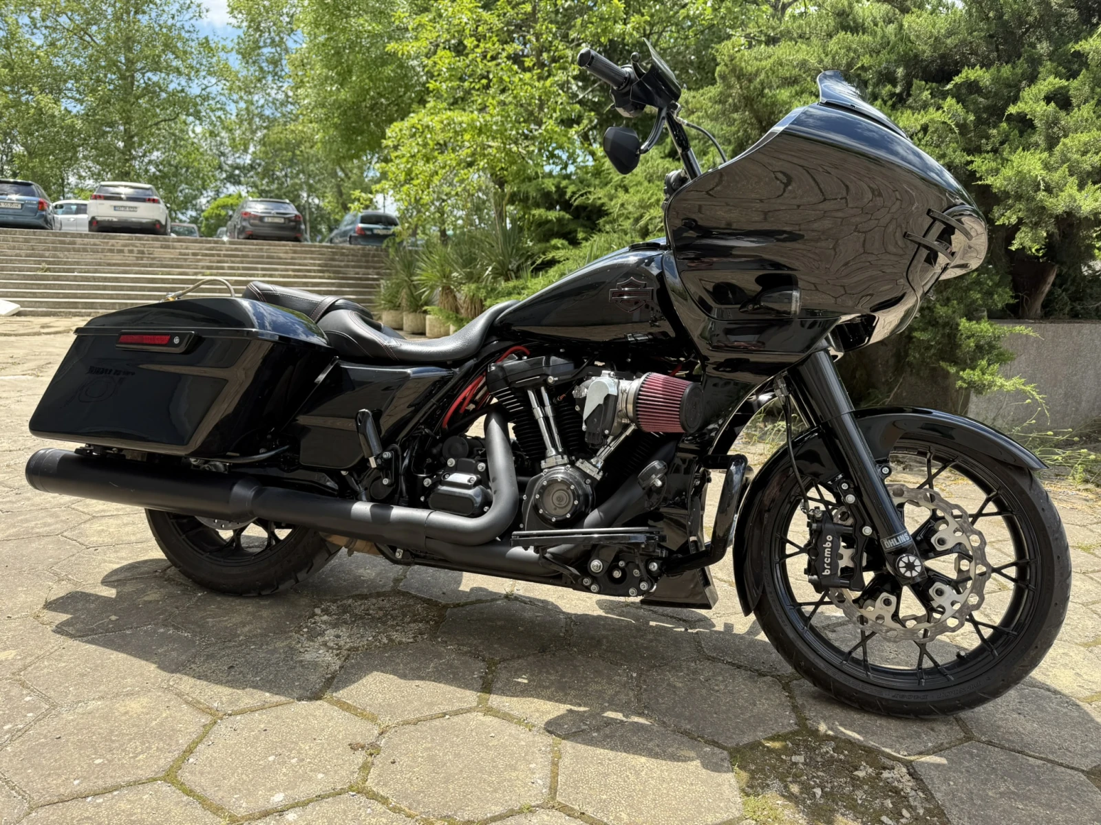 Това е най-иновативното Харли в Европа. В двигателят са вложени компоненти разработка на S&S доказали се през изминалите години. Окачването е възможно най-скъпата комбинация на Олинс за този мотор. Мотора е на 3000 мили, а двигателя на 1000 мили, вече е регистриран. . Маслото е сменено 600 мили след началото на разработката. Цилиндри и бутала - 136" S&S Big Bore - 910-0849 Колянов вал и биели - S&S flywheel - Радзпределителен вал -S&S 590G - Глави - Zippers +2mm ported heads - Тротъл боди - HPi 70mm Инжектори - 7. 1 HPi - FEULING Cylinder head breathers - S&S HD M8 RG 2022 bolts S&S CYCLE Piston Cooling Jet Kit For M8 S&S oil Pump and Cam plate S&S Adjustable Pushrods and tubes S&S Tappet Cuffs S&S Valve Springs up to . 605" COVER CAM Trask ASLT M8 BK COVER clutch Trask ASLT M8 BK Въздушен филтър - Trask Air filter Колектори - FullSac MX Генерация - Rinehart Предно окачване OHLINS Задно окачване - OHLINS Мултимедия - Rockford Fosgate PMX-HD14 Тонколони - Rockford Fosgate TMS65 Stage2 Кабели за свещи - 10мм screaming eagle Добавени са Съединител screaming eagle с 10 плочи и самозаключваща се притискателна платка на BARNETT защото оригиналният не издържа на мощността. Към средата на месец Юли ще бъдат поставени 330мм предни спирачни дискове GALFER и спирачни апарати Brembo. С тях цената ще е 85000Лв. Всички части са купувани чисто нови. Мотора е разработен и настроен. Към дата 09. 07. 2024 е на 1400мили. Мотоциклета се кара всеки уикенд и двигателят става все по-отзивчив на желанията на водача. Благодарение на огромният въртящ момент(над 200NM) мотора се кара изключително леко дори и с втори човек, а магистралният разход със скорост 150км/ч е 6. 7л/100км Възможността да настройваш задното окачване дори и в движение Ви гарантира комфорт не мислим за такъв тип мотори. Комбинацията на колекторите FullSac MX и крайни гърнета Rinehart прави звука умопомрачаващ, дори понякога плашещ. Комбинацията им прави звука приятен за ухото при движение с постоянна газ и убийствен при ускорение. Всички мотори се продават с тунинг нa Американските фирми Screamin' Eagle Performance DynoJet, TTS или TR Това включва оптимизация на ECU(компютъра на мотора) за работа с новите въздушни филтри и ауспуси, както и с горивата продавани в Европа. Имам наличен и Streed Glide 2019 FLHXS Цена 35000лв. Края на месец юли Roud Glide 2024 FLTRX 117" Цена 60000лв