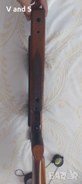 приклада,като нов е,сменена пружина с нова и обслужена вътре,оптиката е чисто нова изкарвал съм да стрелям няколко пъти с нея,давам и кутията на оптиката която е конуспро 6×24×44. Оксидацията беше добре ,на места беше леко паднала и реших да мина с черен матов спрей металната част две ръце,след което стана супеп.Причината да се разделя с нея е че имам още два хайнела,направена е с много мерак за мен,но три броя ми са много. Страхотна спортна пушка за развлечение и спорт.