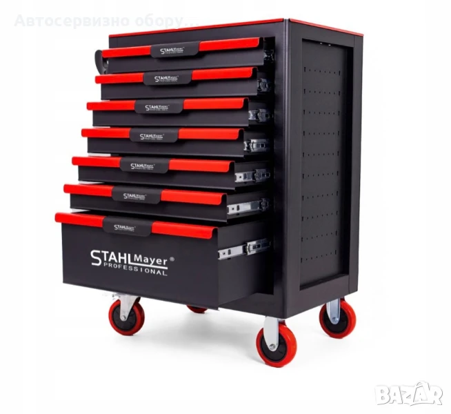 Независимо дали сте професионалист или ентусиаст с домашна работилница, количката за инструменти STAHLMAYER Red Line ще ви осигури надеждност, сигурност и организация на най-високо ниво.