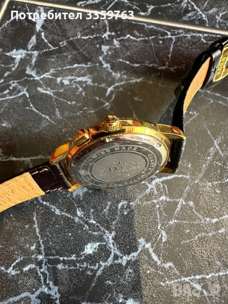 🔹 Елегантен дизайн с позлатен корпус и класическа черна кожена каишка