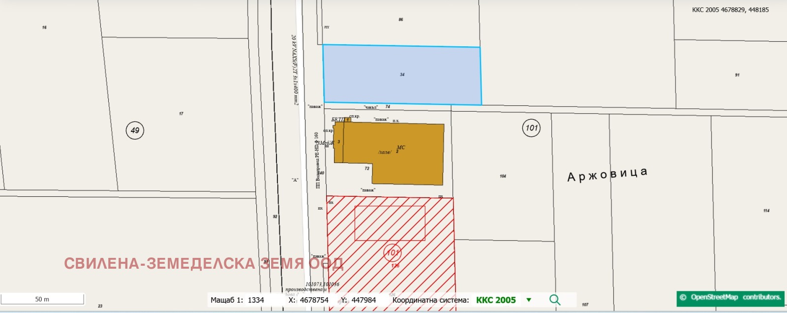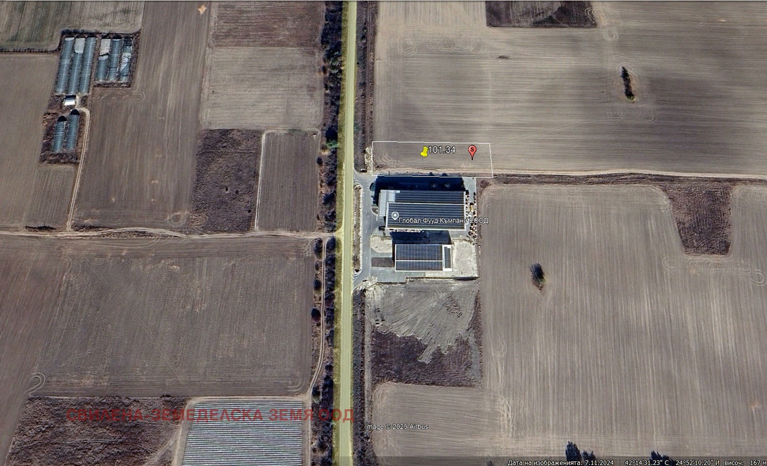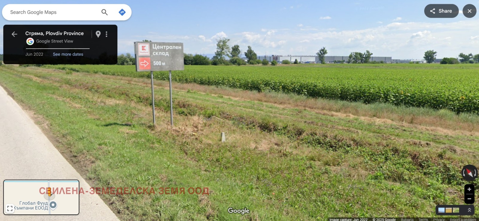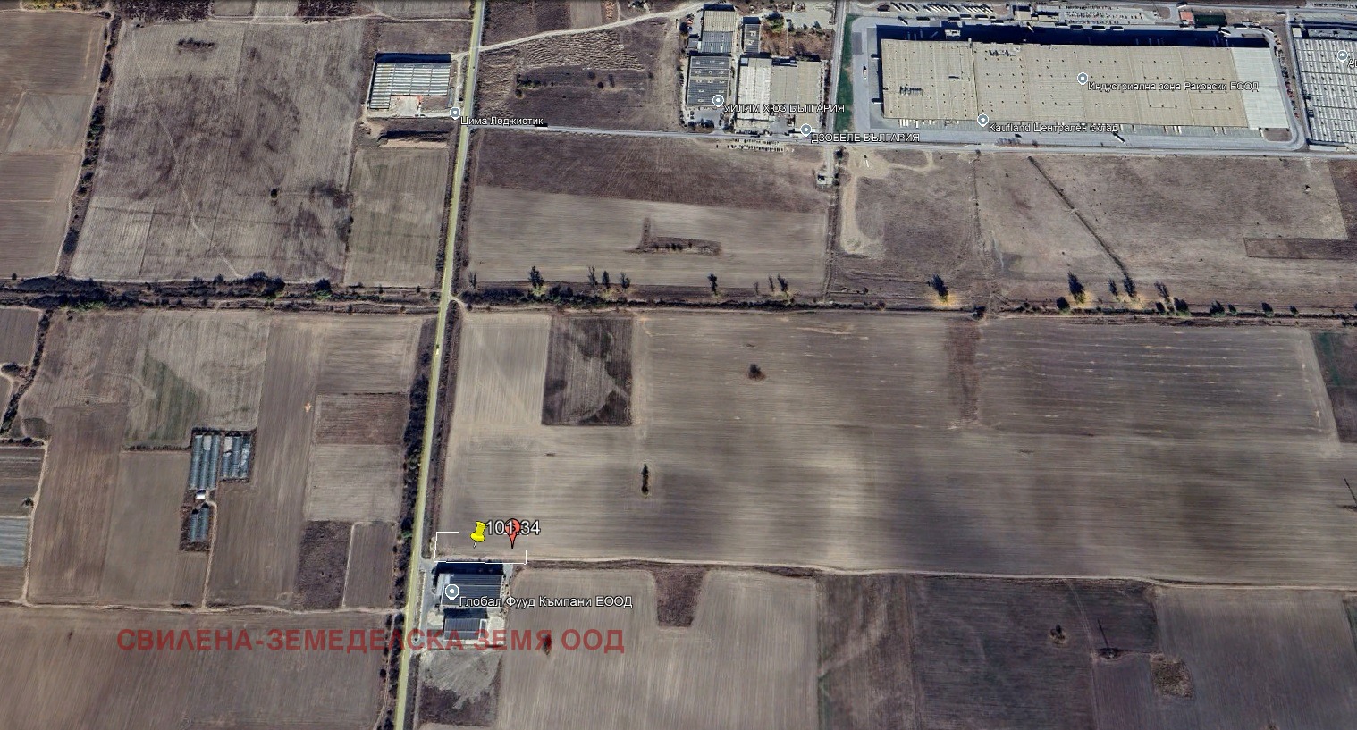 Ъглов поземлен имот в новооформяща се складова зона - непосредствено до склада на Глобал фууд с площ 3300 квадратни метра, с лице 35 м. на пътя за магистралата и 95 м на второстепенен път. Подходящ за складова база или производство след промяна на предназначението.