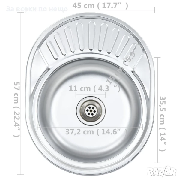 Кухненска мивка с цедка и сифон, овална, неръждаема стомана Код P959 → Обява 51112849