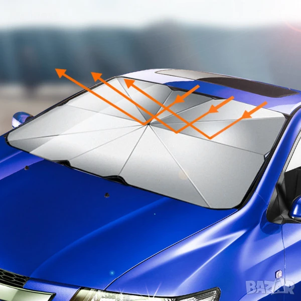Традиционните сенници понякога създават излишни затруднения и отнемат време за поставяне. Забравете за тези грижи с този нов и иновативен продукт – чадър-сенник за автомобил. Поставя се лесно, осигурява добра защита и значително намалява температурата. С него пестите време, когато бързате, а същевременно ограничавате неблагоприятния ефект на изгарящото лятно слънце върху вашия автомобил.