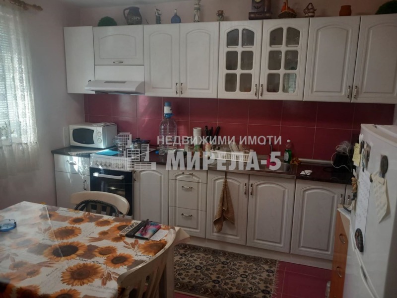 Къщата е на един етаж,на плоча и има следното разпределение: навес(лятна кухня) с площ от 30кв.м,антре,коридор,кухня,две спални,баня и тоалетна.