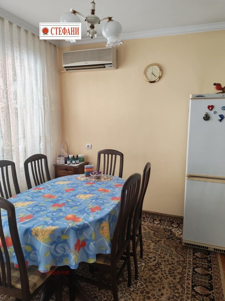 Агенция СТЕФАНИ-НЕЛИ ЙОРДАНОВА продава чудесен четиристаен апартамент с площ от 145кв.м., в тухлен блок с асансьор, много качествено строителство с изключително големи и просторни стаи.Жилището е разположено на среден етаж: 4-ти жилищен етаж от 7, апартамента е вътрешен, топъл с изложение ИЗТОК/ЗАПАД.Състои се от - голям и просторен дневен тракт около 40 кв.м. с излаз на голяма остъклена тераса с дължина около 8 м., три големи самостоятелни спални, едната е с остъклена тераса, а терасите на другите две спални са усвоени, голяма баня с вана, биде и тоалетна, като помещението е с прозорец, и отделно - перално помещение с втора тоалетна, много голям килер,голям коридор с дължина около 8 м. с вградени гардероби. Много добро състояние - отличен паркет, теракот, вътрешни изолации, AL дограма, метална врата, напълно обзаведен с мебели с изключение на едната спалня.Апартаментът се намира на 4-ти етаж в добре поддържана кооперация, разполагаща с асансьор и система за контрол на достъпа за допълнителна сигурност. Локацията е идеална както за семейства, така и за динамични хора, тъй като районът е облагороден и добре устроен с множество зелени площи, детски площадки и всички необходими удобства в непосредствена близост.