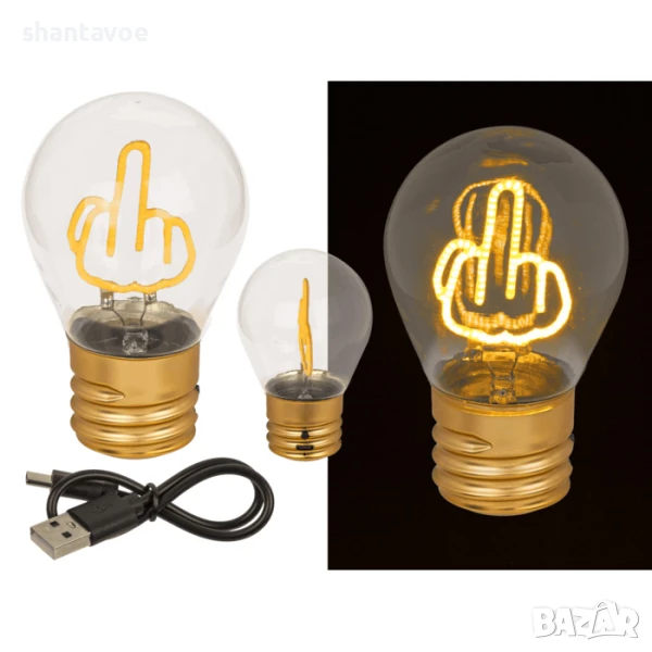 На вашето внимание е тази стъклена лампа крушка със светещ среден пръст, която непременно ще внесе саркастичен хумор и доза забавление във всеки дом или офис!