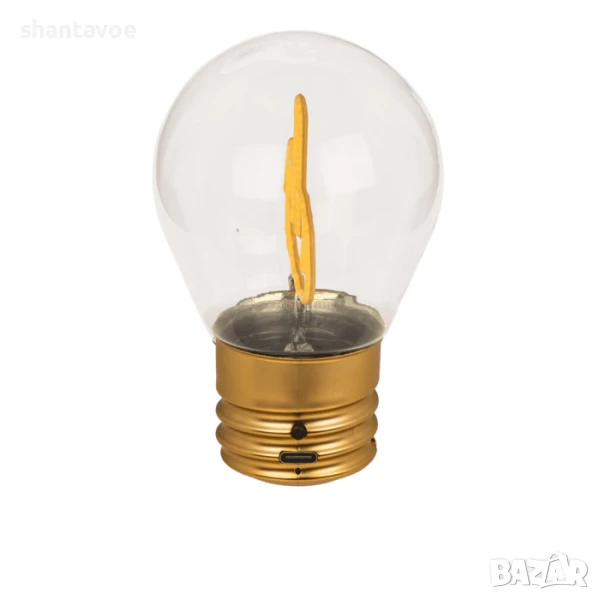 От външната си страна стъклената лампа е с форма на обикновена крушка с фасунга.