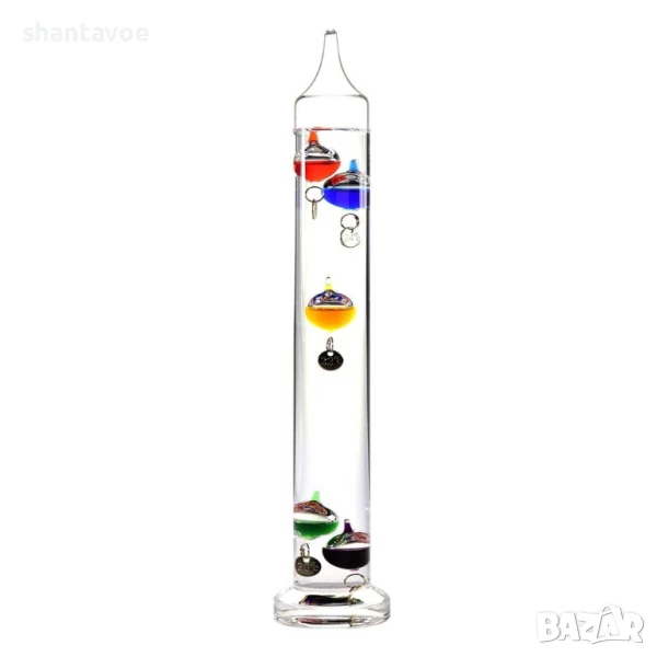 Докоснете се до света на науката с помощта на този елегантен стъклен термометър по идея на италианския учен Галилео Галилей.