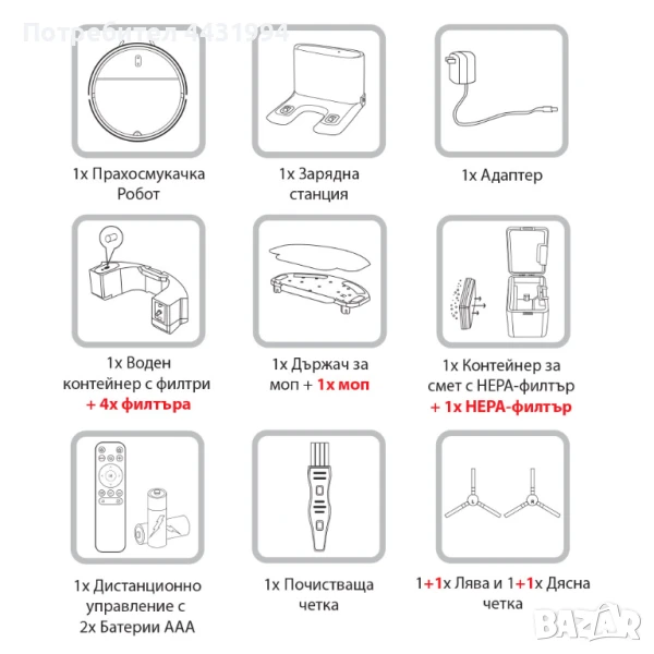 2 in 1: Прахосмукачка робот и моп за сухо и мокро почистване Включен втори комплект консумативи